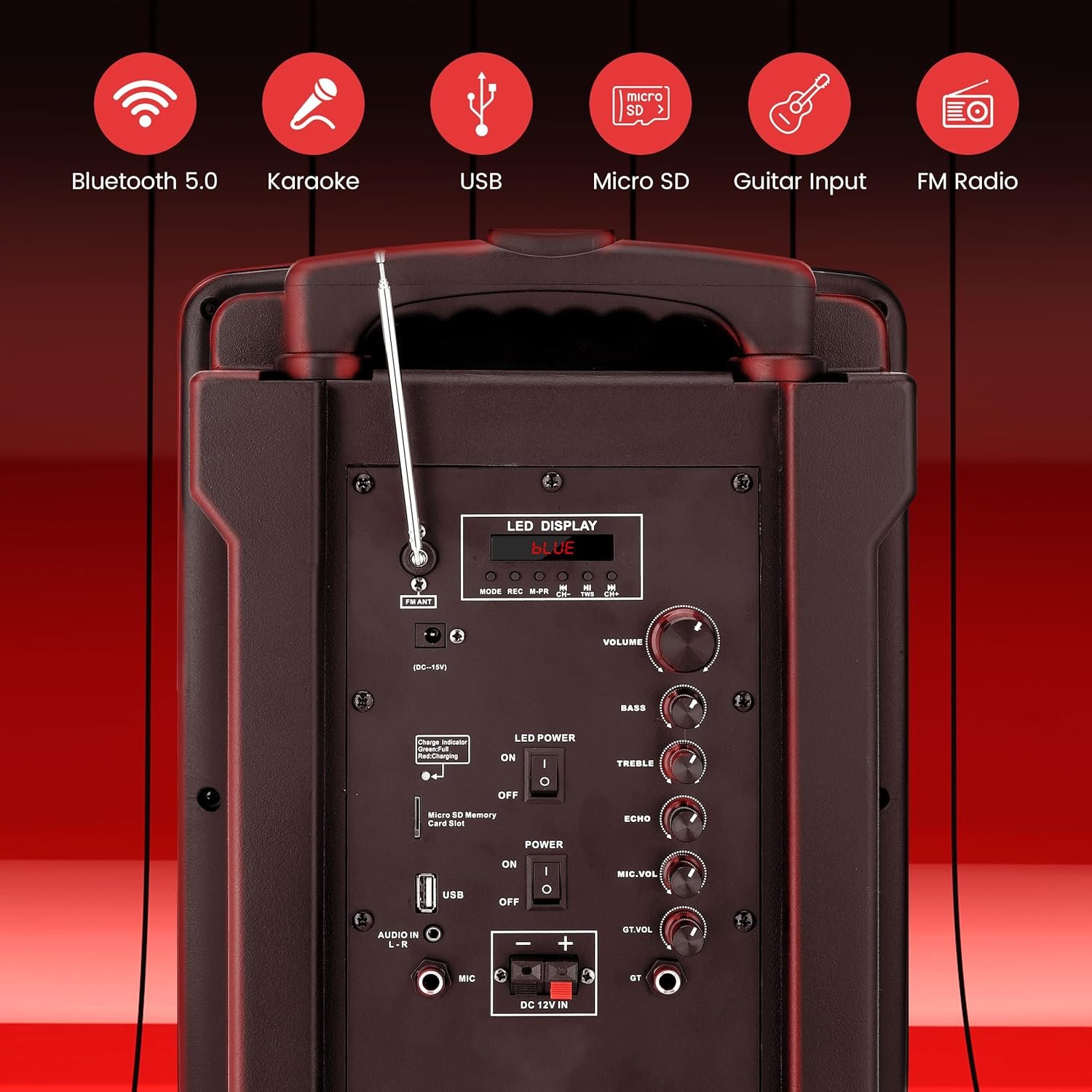The 8” True Wireless Portable PA Speaker features Bluetooth 5.0 for seamless audio streaming, ensuring compatibility with modern devices. It boasts a high output of 280 watts, dual microphones (wired and wireless), and multiple input options, including USB and AUX. Its built-in rechargeable battery provides up to 4 hours of use. The speaker is designed for both indoor and outdoor events, enhanced by multi-color LED party lights for lively atmospheres. Constructed with durable materials, the system is easily portable due to its trolley wheels and includes a remote control for convenience. Overall, it’s perfect for events and karaoke.