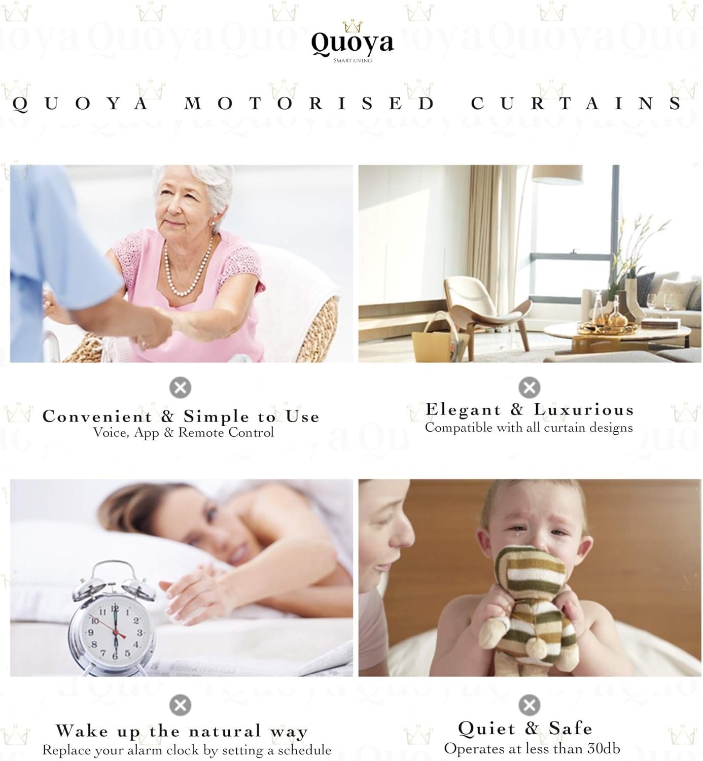 Quoya Living offers high-quality, affordable smart electric curtain tracks designed to simplify home routines and enhance relaxation. Their products work with Amazon Alexa, Google Assistant, and Apple Watch, allowing users to control curtains effortlessly from anywhere. With easy installation that requires no special tools, customizable tracks fit windows up to 118 inches and support all curtain types (except eyelet and grommet). Quoya provides 24/7 customer support, a 3-year warranty, and detailed installation videos for a seamless experience. Their innovative features include automated scheduling and remote control, making luxury accessible to everyone.
