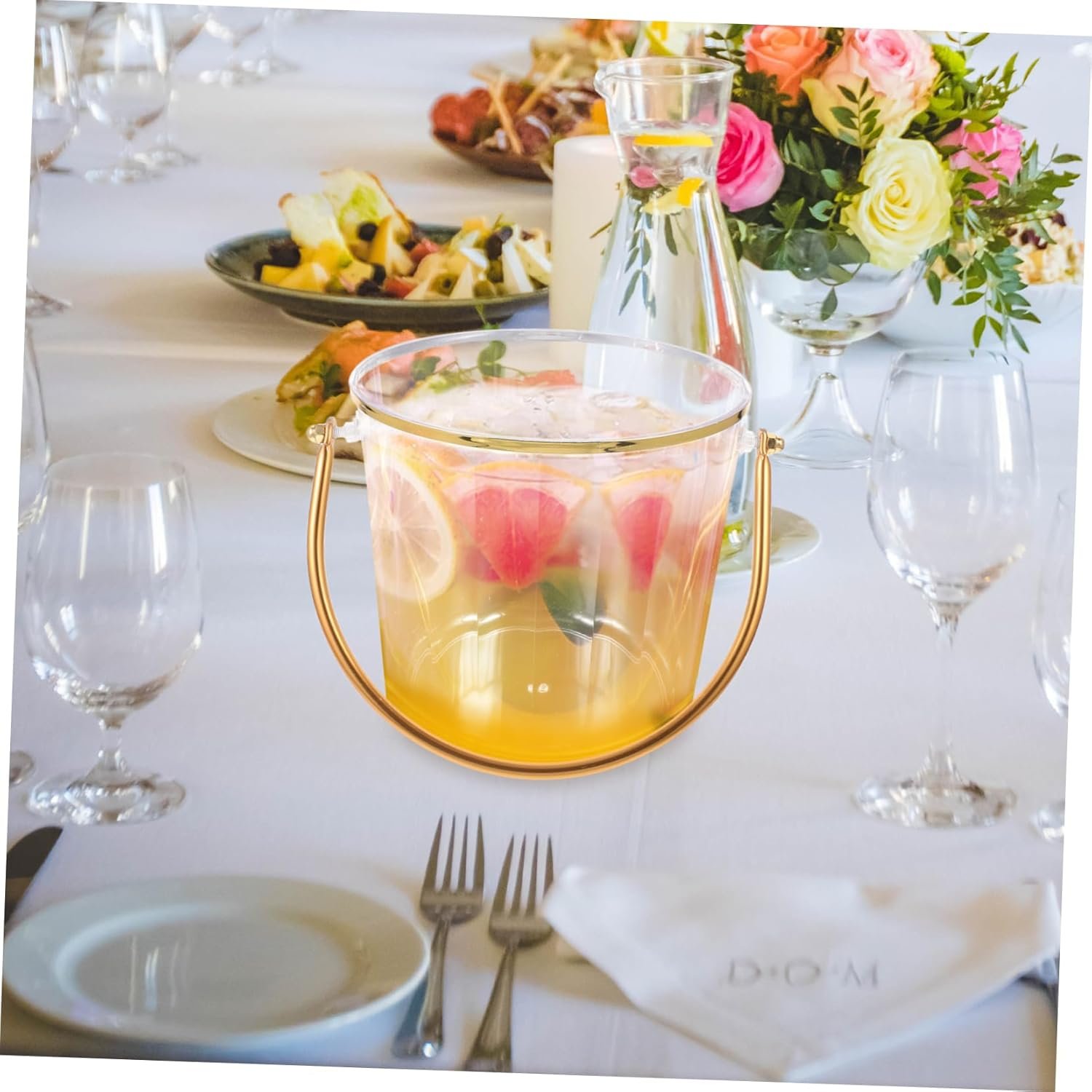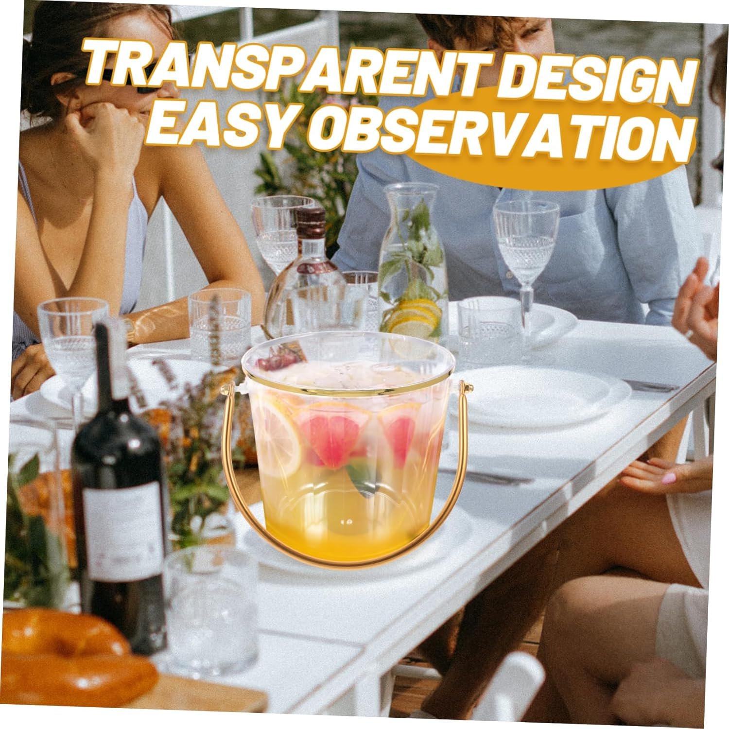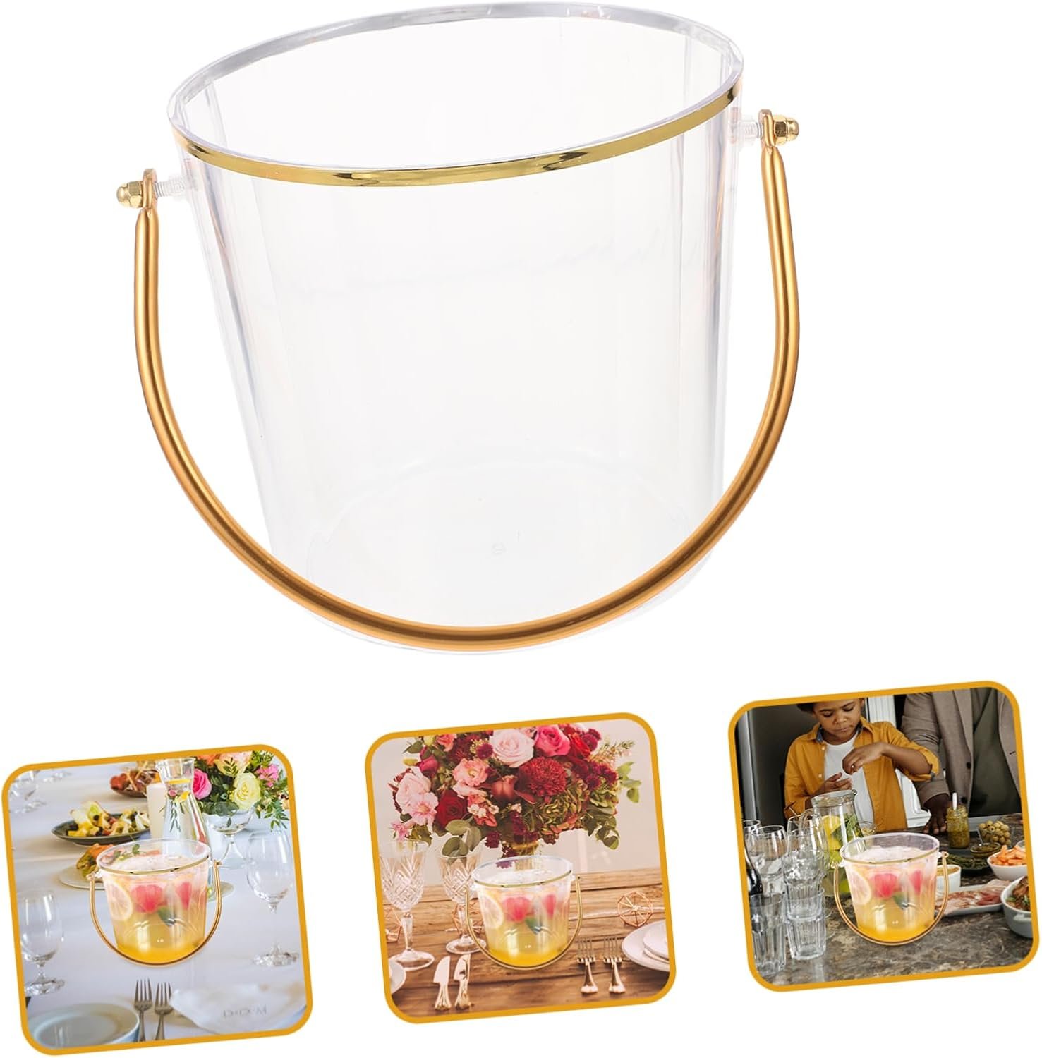 This versatile ice bucket is made of durable plastic in a transparent design, measuring 16.00×15.50×13.50cm. Ideal for various settings like homes, restaurants, bars, and parties, it effectively keeps beverages like beer and wine chilled. The bucket features comfortable handles for easy transport and is easy to clean. Its stylish appearance complements various decor styles, making it suitable for both indoor and outdoor use. Additionally, it can accommodate snacks and other items, making it a practical choice for gatherings and events.