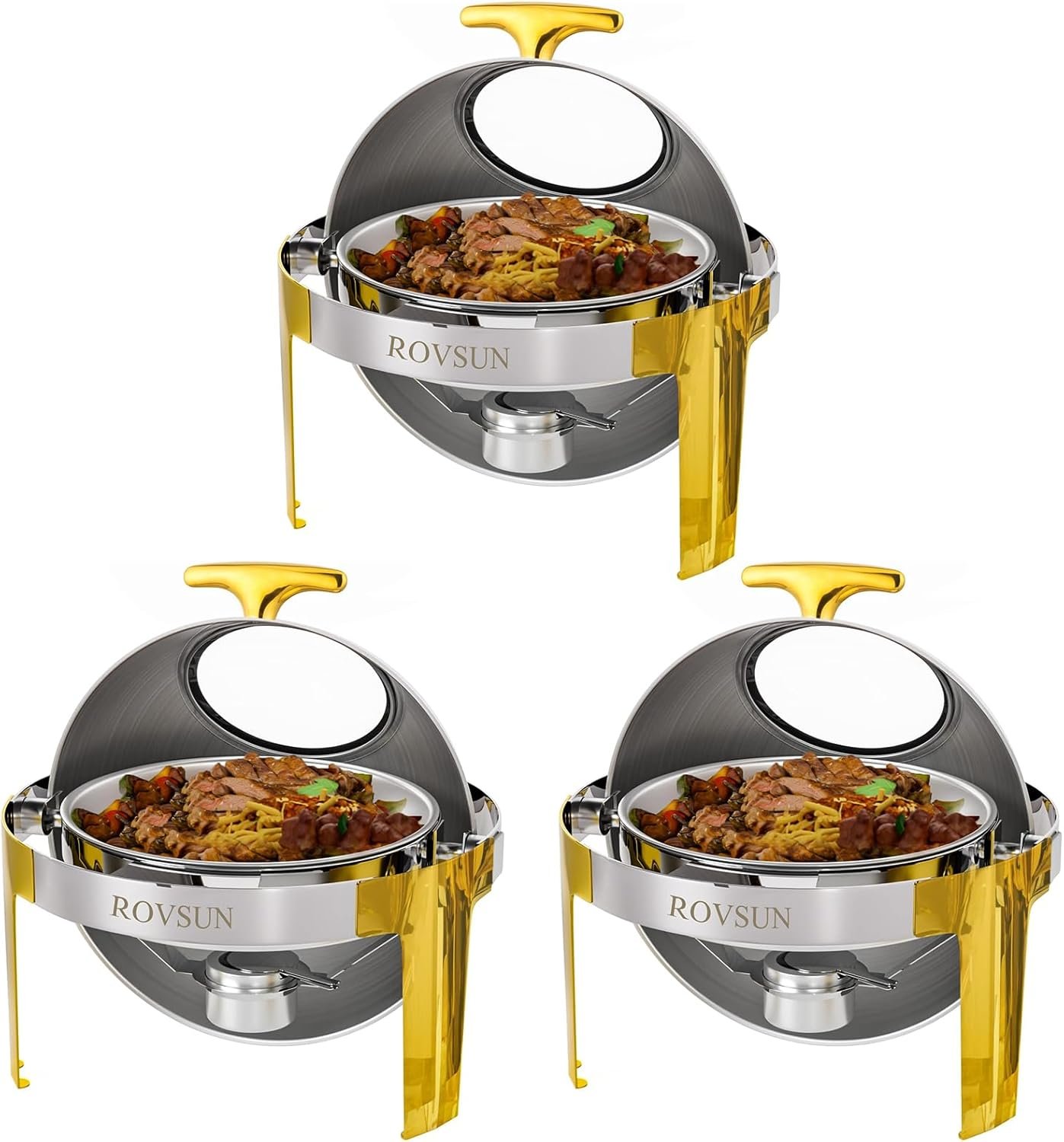 ROVSUN, established in 2017, offers affordable, high-quality catering supplies, focusing on customer service and feedback for continuous improvement. They provide a variety of products, including gold chafing dishes and electric options, designed for home and commercial use. Features include durable stainless steel construction, elegant design, and efficient temperature maintenance for food. Their complete sets come with multiple pans and holders, catering to events and gatherings, ensuring a seamless dining experience for thousands of families each year. Their warehouses in CA, NJ, and GA allow for quick delivery.