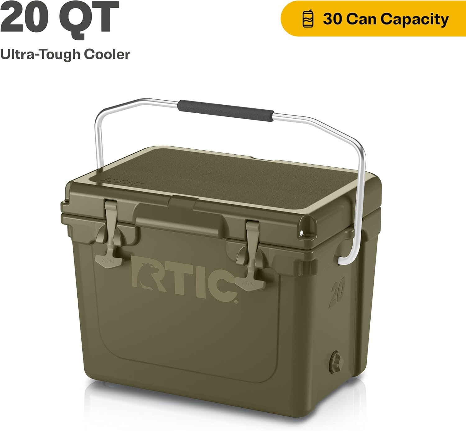 The RTIC Ultra-Tough Cooler is designed for durability and long-lasting ice retention, making it ideal for various outdoor adventures. It features a heavy-duty stainless steel handle for easy carrying and comes in multiple sizes, including 20 QT, 45 QT, 65 QT, 110 QT, and 145 QT. The 20 QT model can hold up to 30 cans and also serves as a bench or tabletop. Weighing 15.7 lbs, it’s perfect for camping, beach outings, and barbecues. Shop now to explore the best sellers!