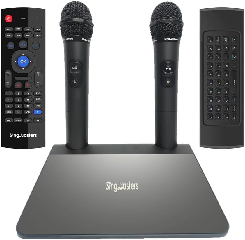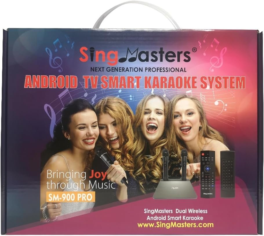 The SingMasters SM900 PRO is a next-generation professional karaoke system that combines Android TV capabilities with exclusive features like Wi-Fi 6, YouTube karaoke, voice search, and dual live scoring. Suitable for both casual and professional singers, it supports songs in 30 languages. The system includes dual UHF wireless mics, video recording, and social media sharing options, enhancing your karaoke experience. It also allows for smart control via a mobile app. The package comes with essential accessories, making it a complete home entertainment solution for hosting fun karaoke parties or events.