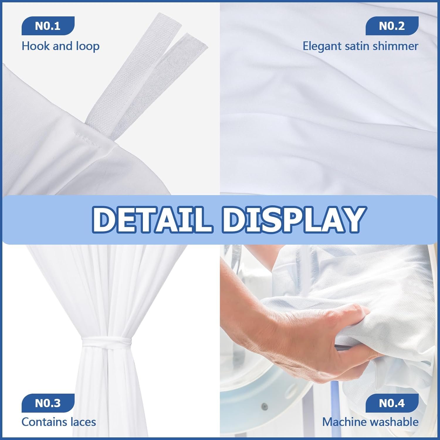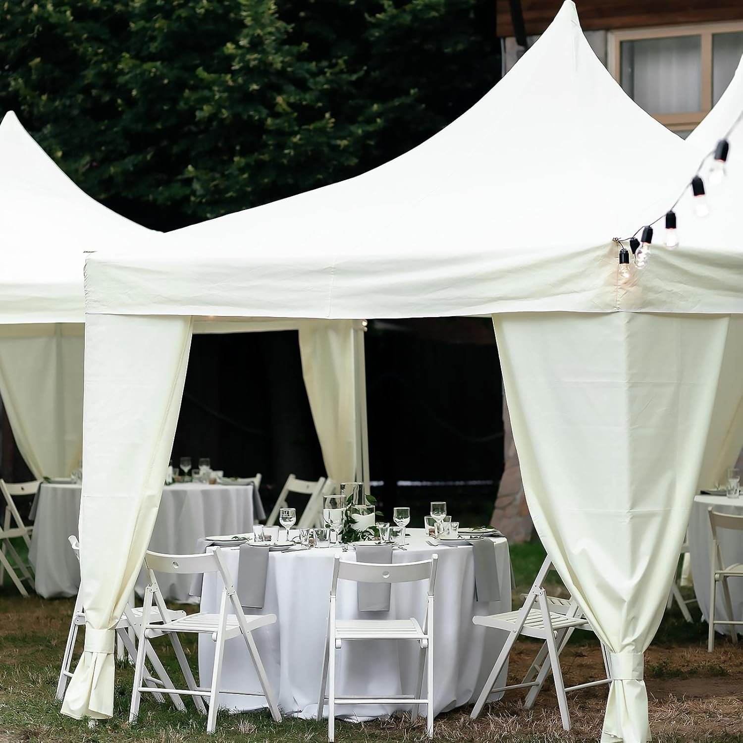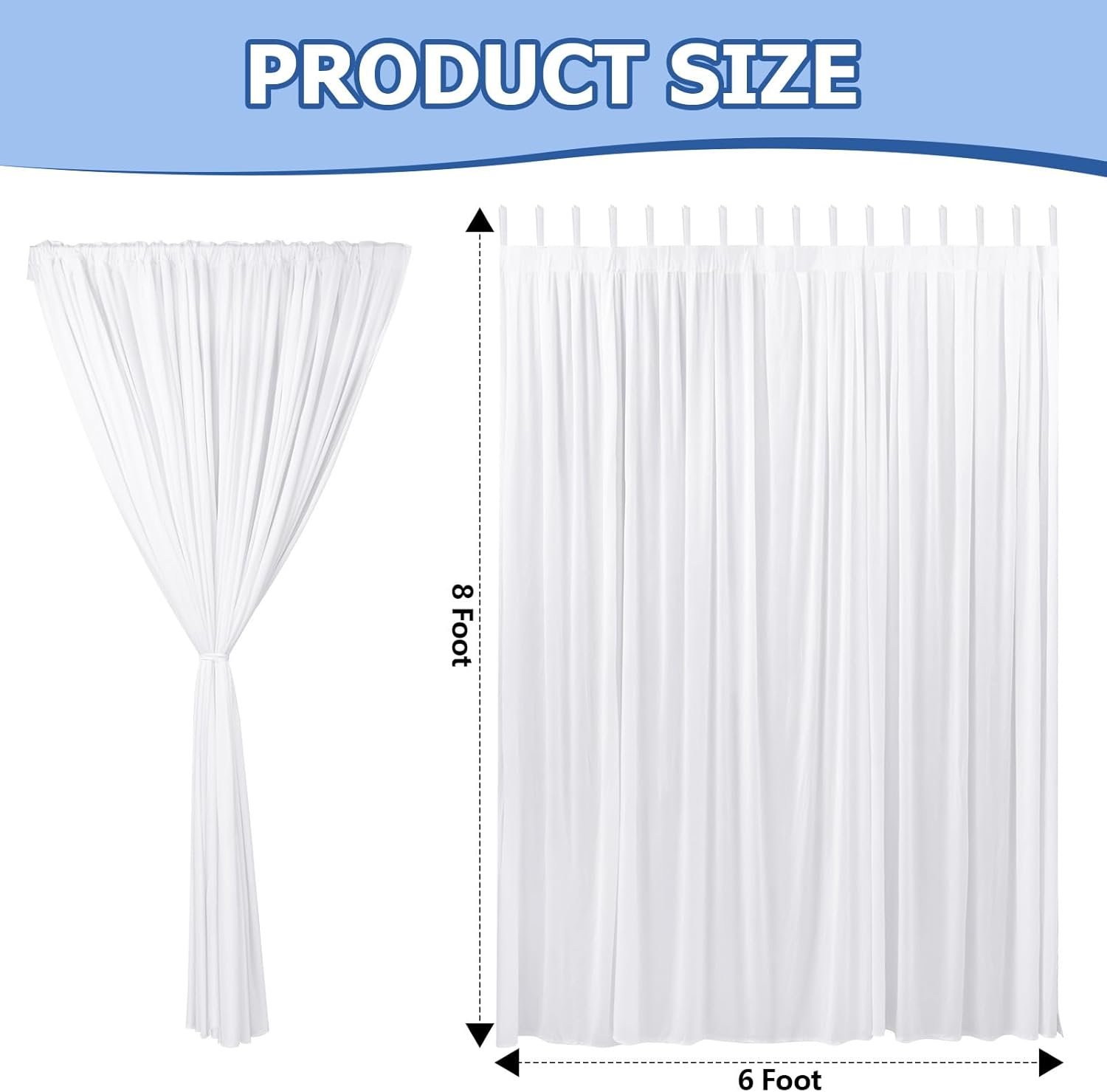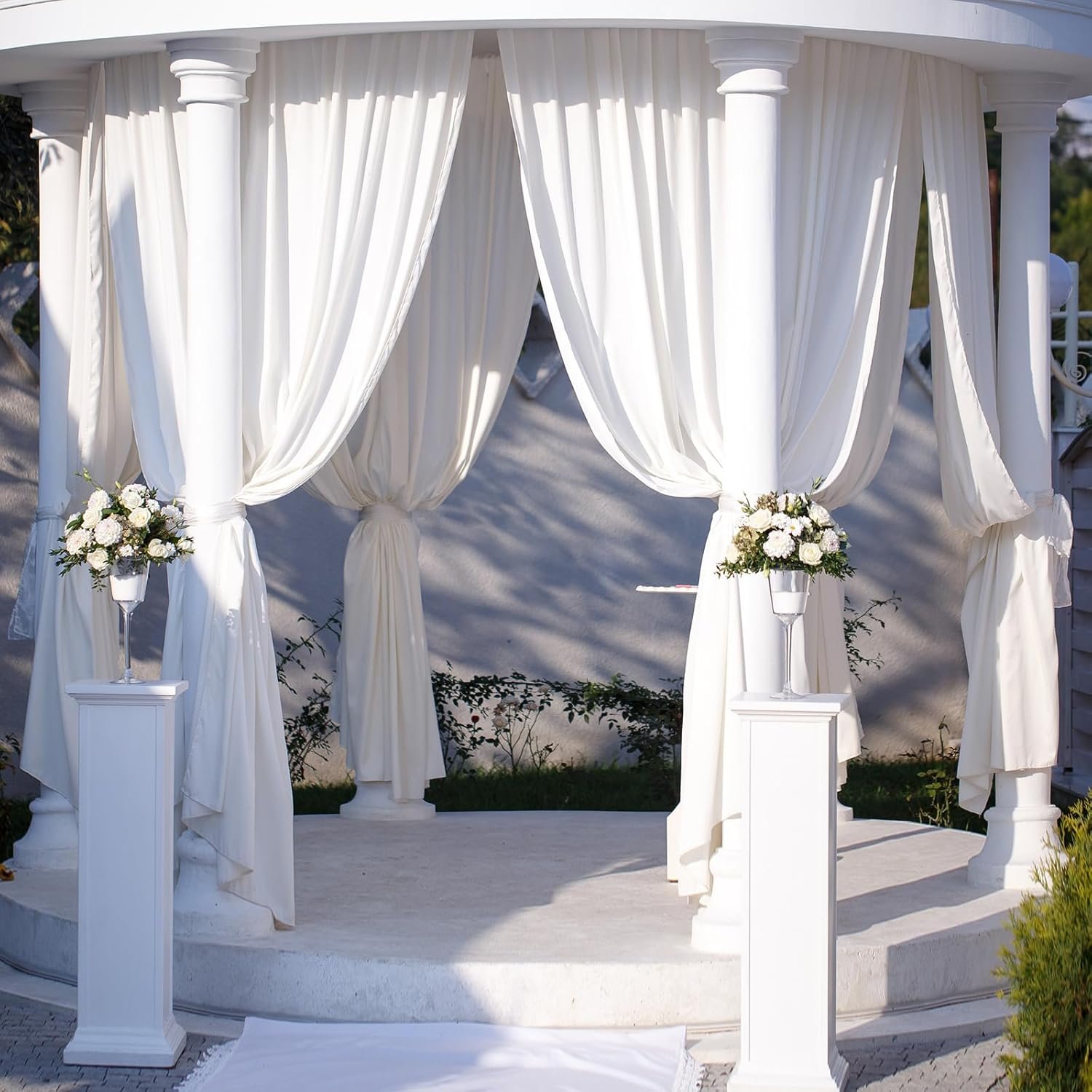 These white outdoor curtains are made from durable polyester fiber, designed for weather resilience. They provide excellent coverage (8.2 ft long, 6.6 ft wide), ensuring privacy and sun control. The pack includes eight curtains and ropes, perfect for versatile outdoor decoration. Easy to clean, they can be machine washed and hung to dry. Featuring a detachable sticky tab top, installation is quick and hassle-free. Their elegant color enhances any outdoor space, making them suitable for patios, pergolas, and even events like weddings. Note: Canopy not included, and slight size/color variations may occur.