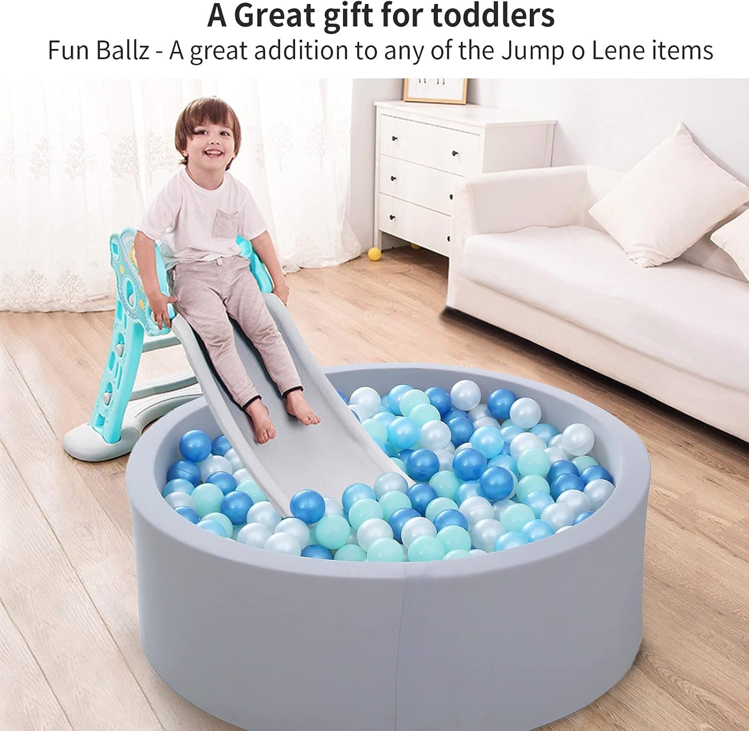The 100PCS Crush Proof Plastic Balls are designed in mint and aqua green colors, perfect for enhancing children’s rooms and play areas like kindergartens and nurseries. Made from safe, non-toxic materials, these durable 2.17-inch balls can support over 130 pounds, ensuring child safety during play. They promote interactive play, enhance parent-child bonding, and are suitable for various activities, such as ball pits and playgrounds. With multiple color options, these balls are ideal gifts for kids’ parties. They come with a convenient storage bag and are backed by a satisfaction guarantee.