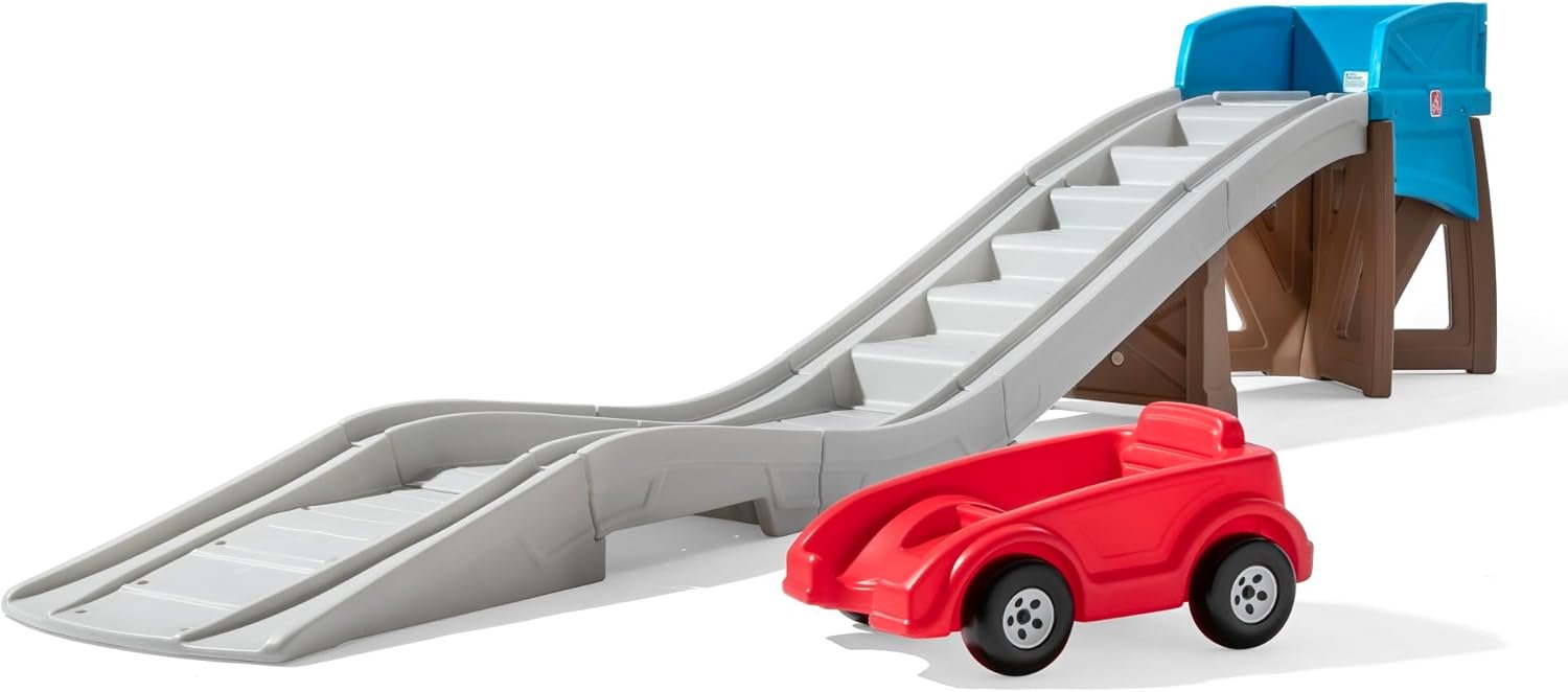 The Step2 Extreme Thrill Coaster Toy offers an amusement park experience at home with a 14-foot track and an ATV-inspired ride-on car for toddlers aged 3 and above. Designed with safety in mind, it features easy-to-climb steps and a stable coaster car with a 75 lbs weight limit. Suitable for indoor and outdoor play, it promotes active fun while developing gross motor skills. The durable, low-maintenance plastic construction ensures long-lasting vibrant colors. Assembly is required, and the coaster track disassembles for easy storage, providing a secure and engaging play environment for children.