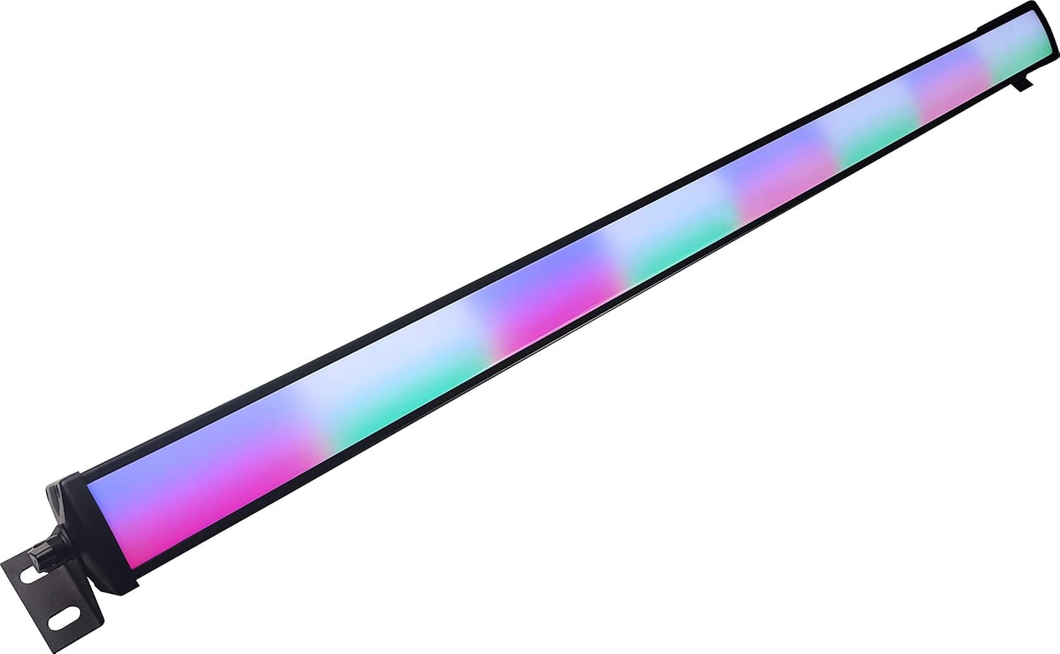 The product features 224 super-bright 5050 RGB 0.2-watt LEDs with 16 individually grouped cells for enhanced color mixing and visual effects. It includes 59 built-in color chase effects and comes with three lens options: clear, frosted, and opaque. The device is powered by a 5V USB charger.