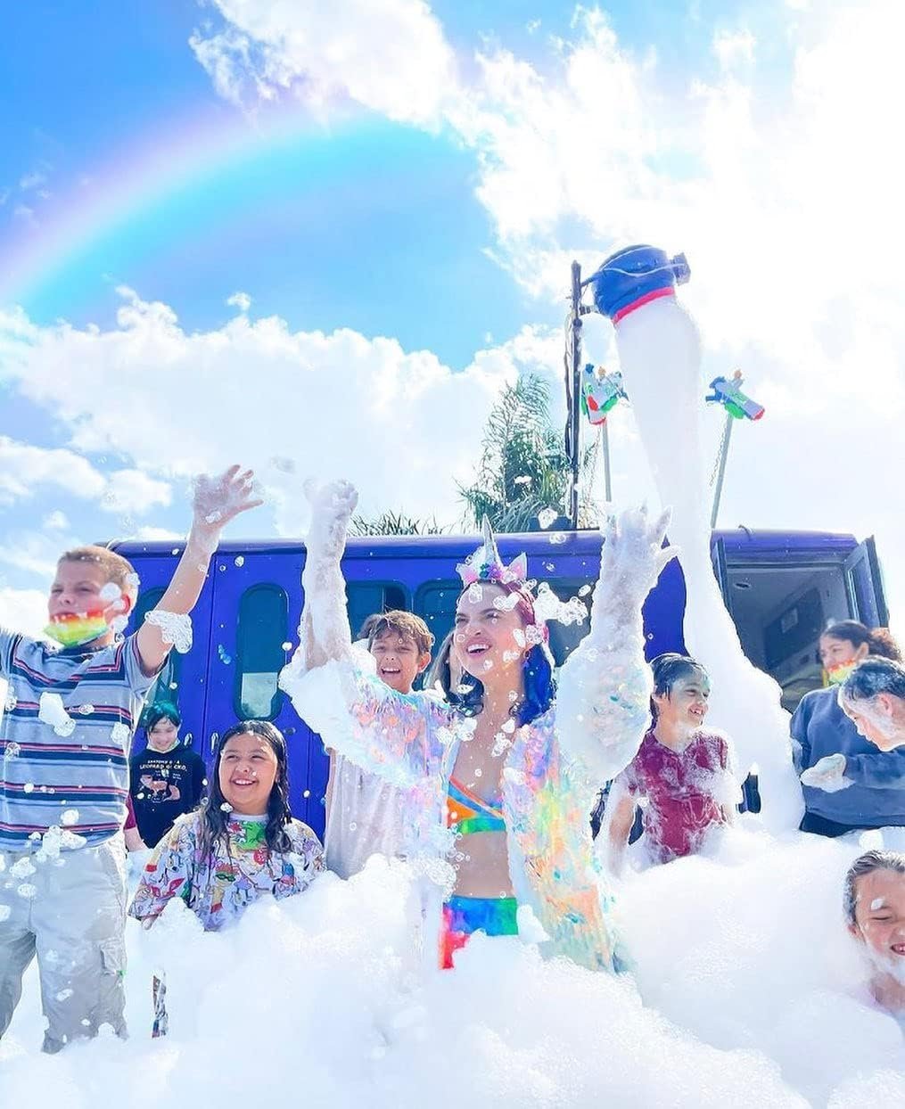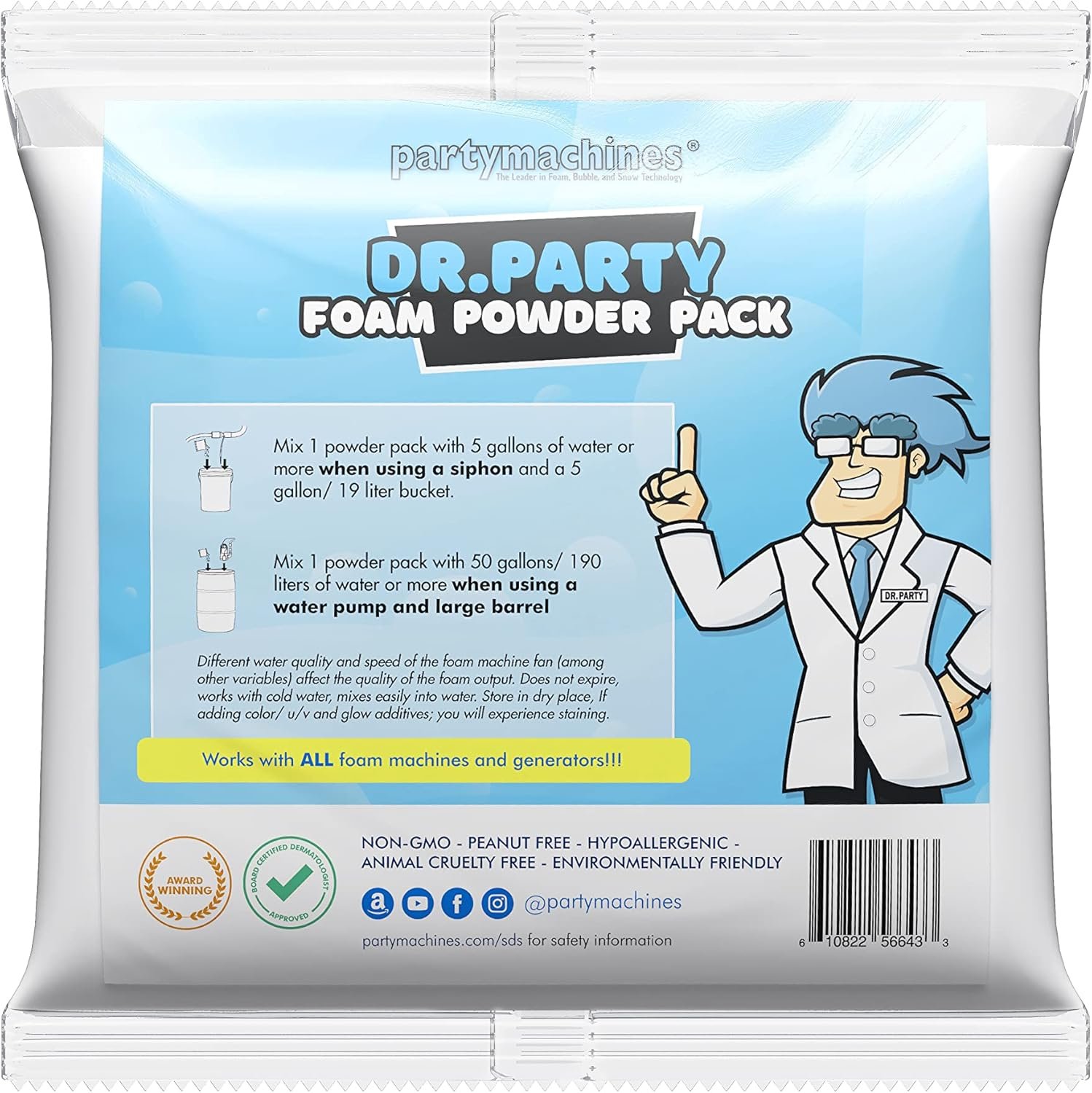 The product is a surfactant-based foam solution designed for creating dense, fluffy foam at events. It is harmless to eyes, skin, and the environment, containing no additives for cleaning or scent. Cleaning is easy; simply spray with water or let it dissipate naturally. The machine operates quietly, allowing for uninterrupted conversations, and the foam packs are cost-effective and require minimal assembly. Its optimized design maximizes foam output while minimizing air waste, making it ideal for parties and gatherings. The solution is available in various pack sizes.