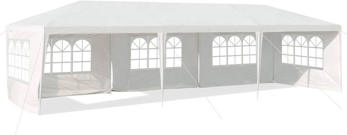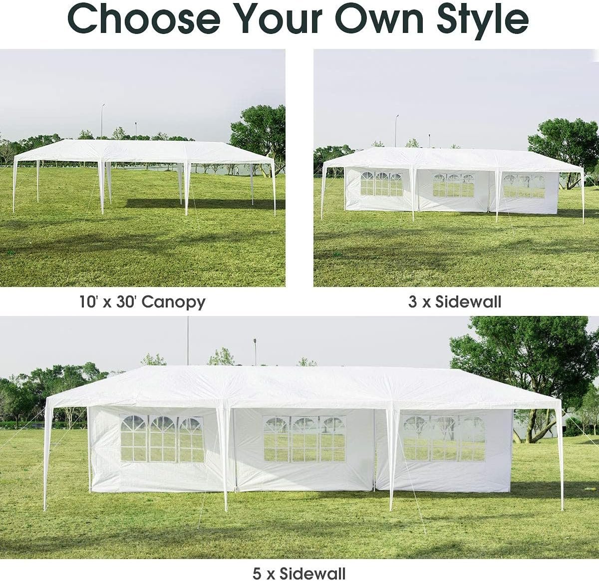 Tangkula 10′ x 30′ Party Tent, Portable Outdoor Tent with 5 Removable Sidewalls, and Connection Stakes, Ropes, Suitable for BBQ, Beach, Garden and Outdoor Events, Wedding Tent, White