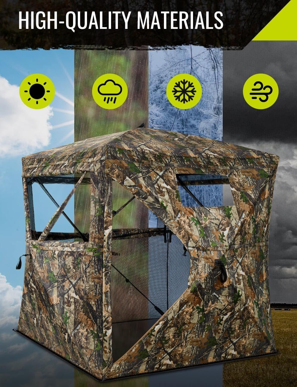 TideWe is dedicated to equipping outdoor enthusiasts with trusted quality products for any adventure. Our hunting blinds feature a unique one-way mesh design for a 270-degree view, noise-free sliding windows, and are built for durability against harsh conditions.