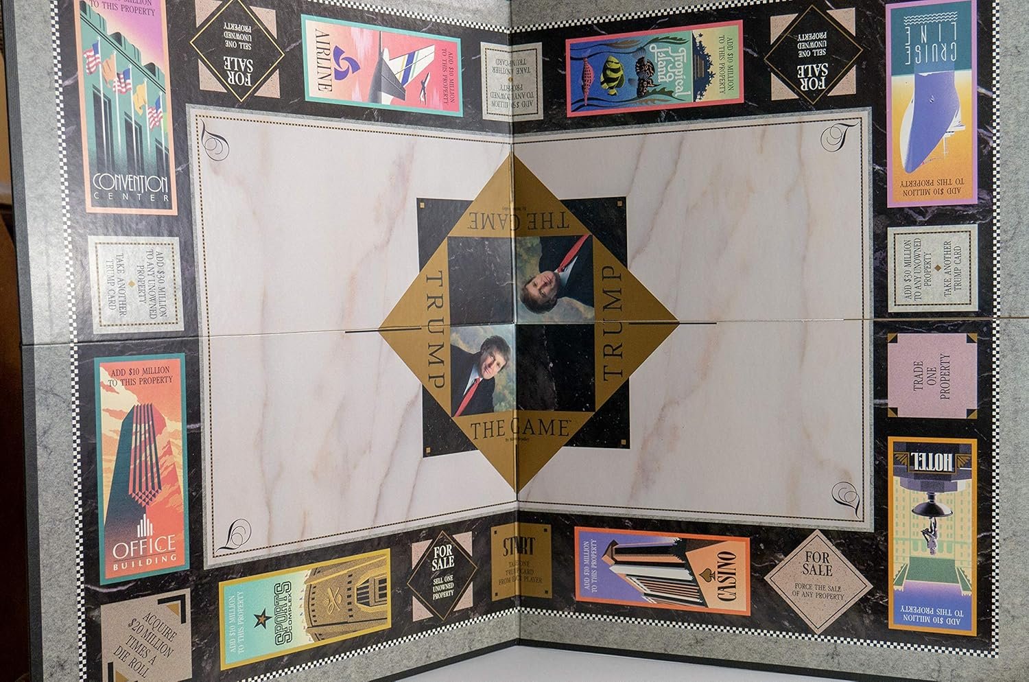 The original Trump game from 1989 offers a unique gaming experience. It features a game board, Trump Cards, property boxes, and quick play cards, making it distinct from any other board game. Players engage in strategic gameplay centered around business and property management, reflecting the style of the real estate mogul, Donald Trump.