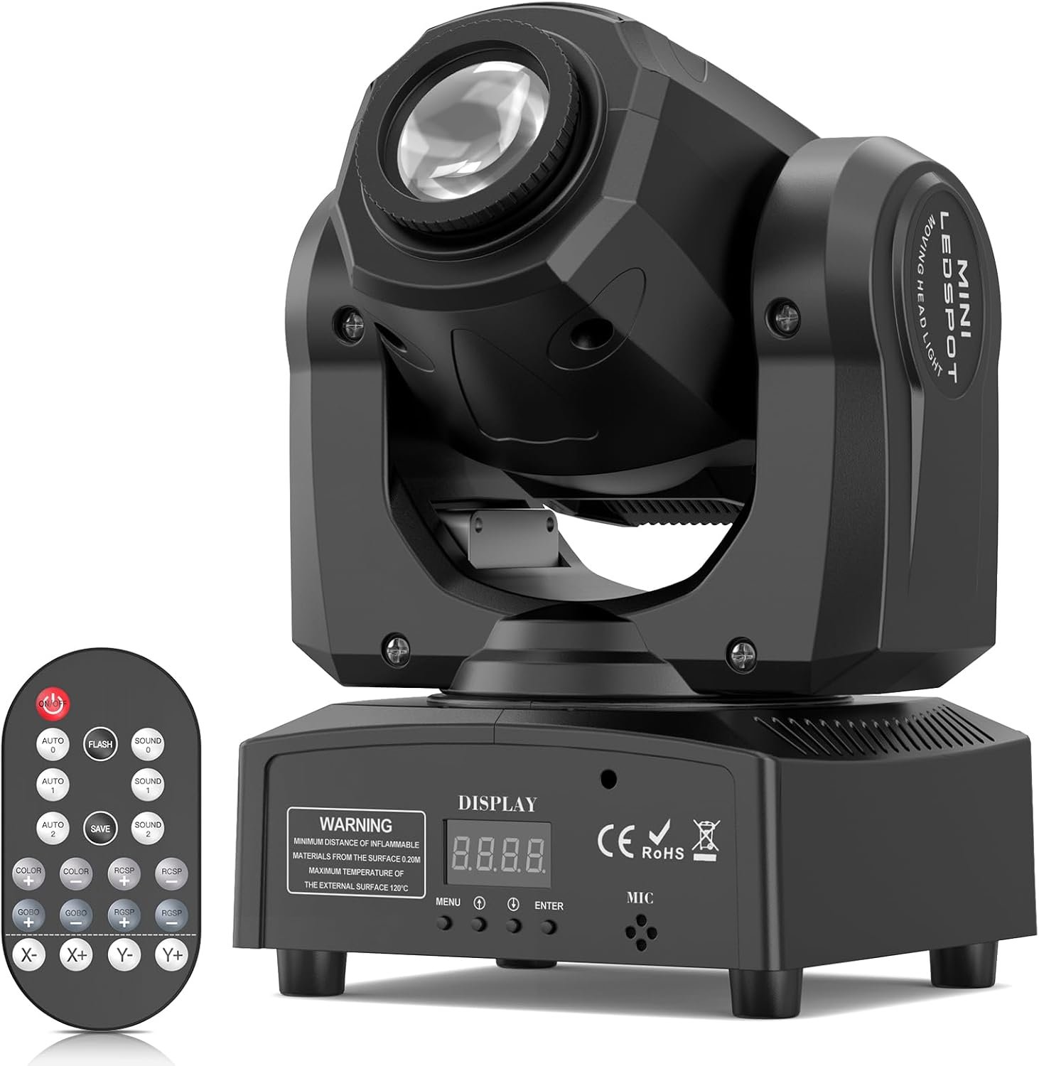 The U’King 60W LED Moving Head Light features remote control and offers 8 GOBO patterns and colors, making it ideal for disco clubs and parties. It has a high output with adjustable lighting speeds and a scanning angle of 540° on the X-axis and 270° on the Y-axis. Users can choose from five operational modes: Automatic, Sound Activated, DMX512, Master-Slave, and Remote Control. Its flexible mounting bracket allows easy installation on DJ stands, enhancing events like weddings and birthday parties. Sold in pairs, it enhances the fun and variety of any lighting show.