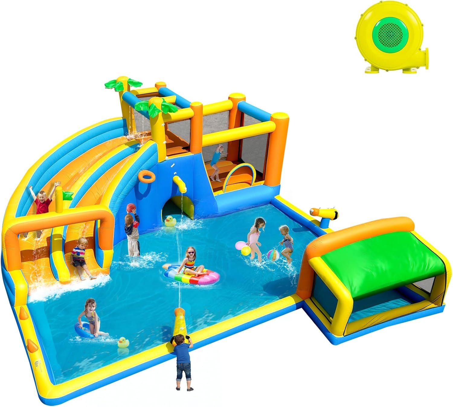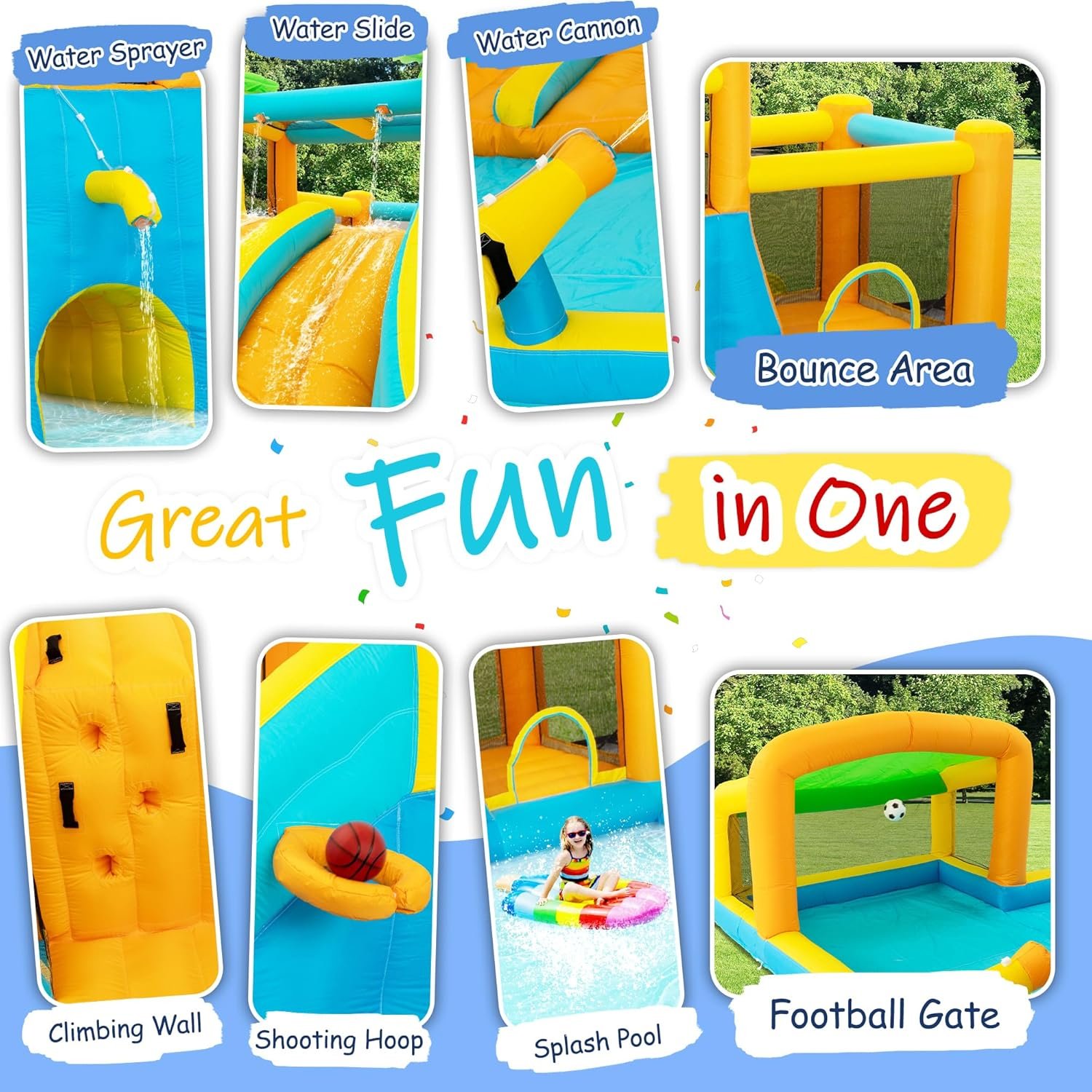 Bowthy focuses on combining beauty and practicality in its designs, prioritizing high quality and craftsmanship. The brand offers a wide selection of colors and styles, emphasizing comfort and elegance. Additionally, Bowthy features a robust inflatable water slide made from premium materials, designed for safety and longevity. Suitable for up to five children aged 3 to 8, it includes various entertaining elements like slides, a climbing wall, and a splash pool. The slide inflates quickly with a powerful UL-certified blower, and the set includes multiple accessories for enhanced fun.