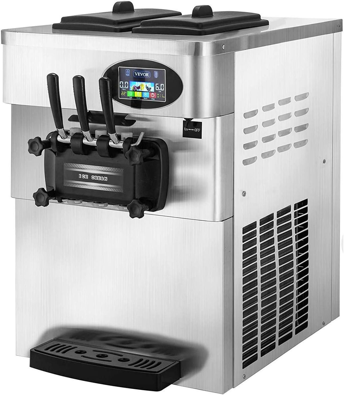 VEVOR 2200W Commercial Soft Ice Cream Machine 3 Flavors 5.3 to 7.4Gallons per Hour PreCooling at Night Auto Clean LCD Panel for Restaurants Snack Bar, Silver