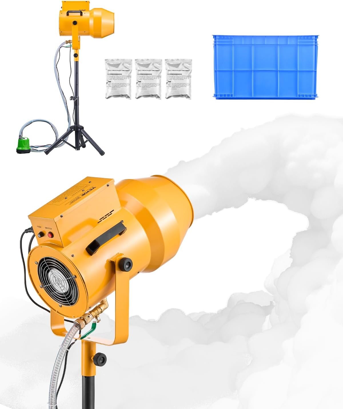 The 1200W High-Power Foam Machine generates foam quickly and efficiently, perfect for birthdays, pool parties, and weddings. It features a waterproof fan, an overheat management system, and a versatile spray head that adjusts for optimal foam output. Lightweight and compact, it includes a portable tripod for easy setup and transport. The machine comes with 3 packs of hypoallergenic foam powder and a 20-gallon tank for extended use with minimal refills. Ideal for various events, it ensures fun and memorable experiences while being easy to clean afterward.