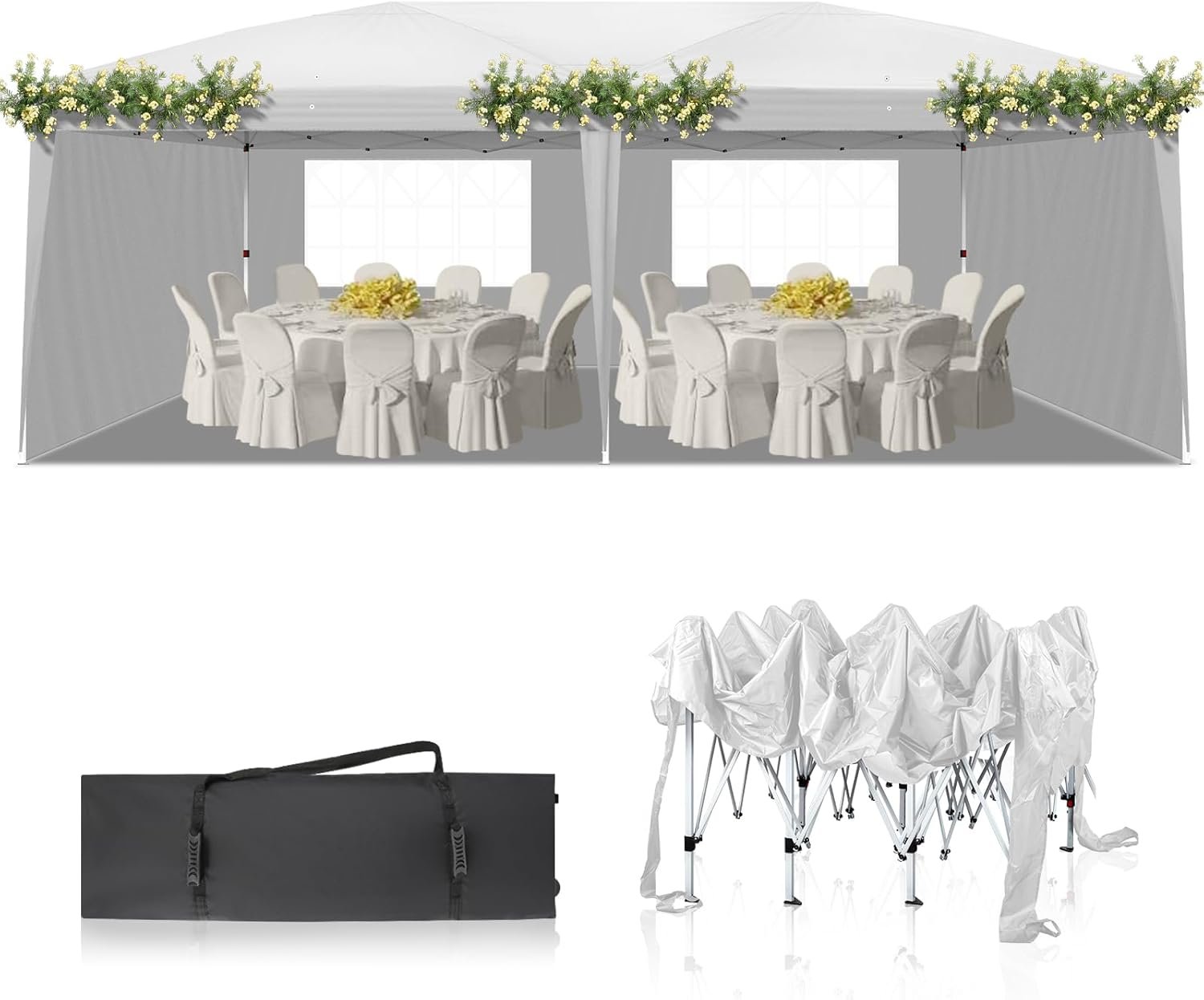 VINGLI 10×10 Pop Up Canopy Tent with Carry Bag and Sandbags, Outdoor Gazebo Canopy 10×10 Party Tent Commercial for Party, Event (White, 10x20ft)