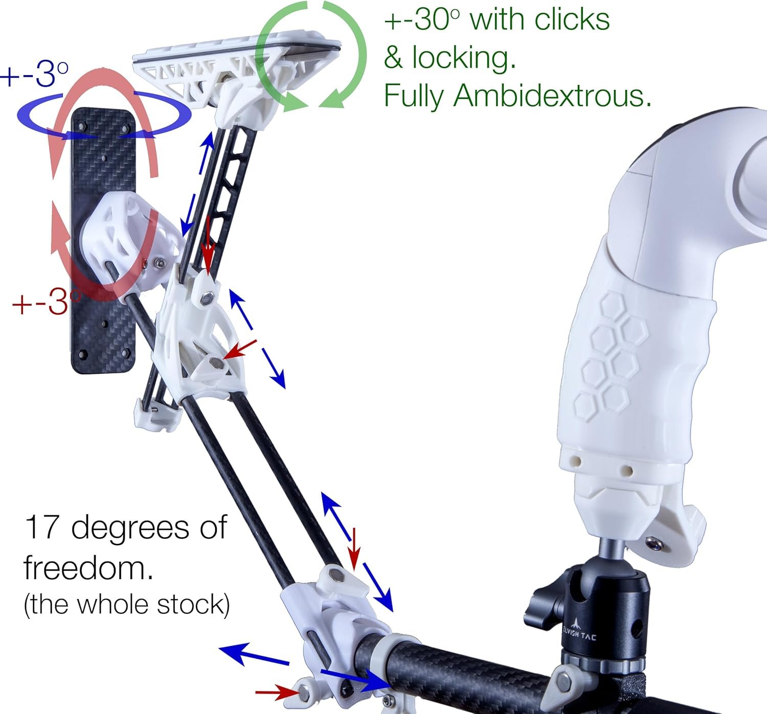 Customers find the VR gunstock adapter to be super solid and appreciate its phenomenal adjustability. Moreover, the product improves accuracy and is simple to use, with one customer noting it works with all different types of weapons. Additionally, the material quality receives positive feedback, with one customer mentioning the carbon fiber construction. However, the magnetic strength and stability receive mixed reviews, with some praising the strong magnets while others find them weak, and one customer reporting issues with the stock falling off during combat.