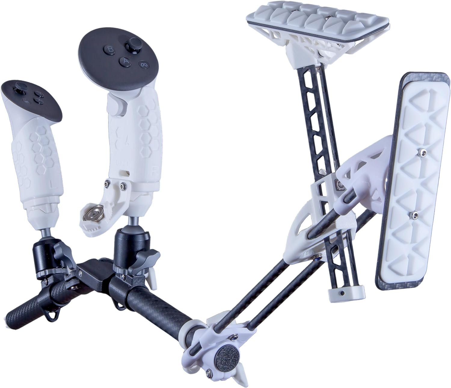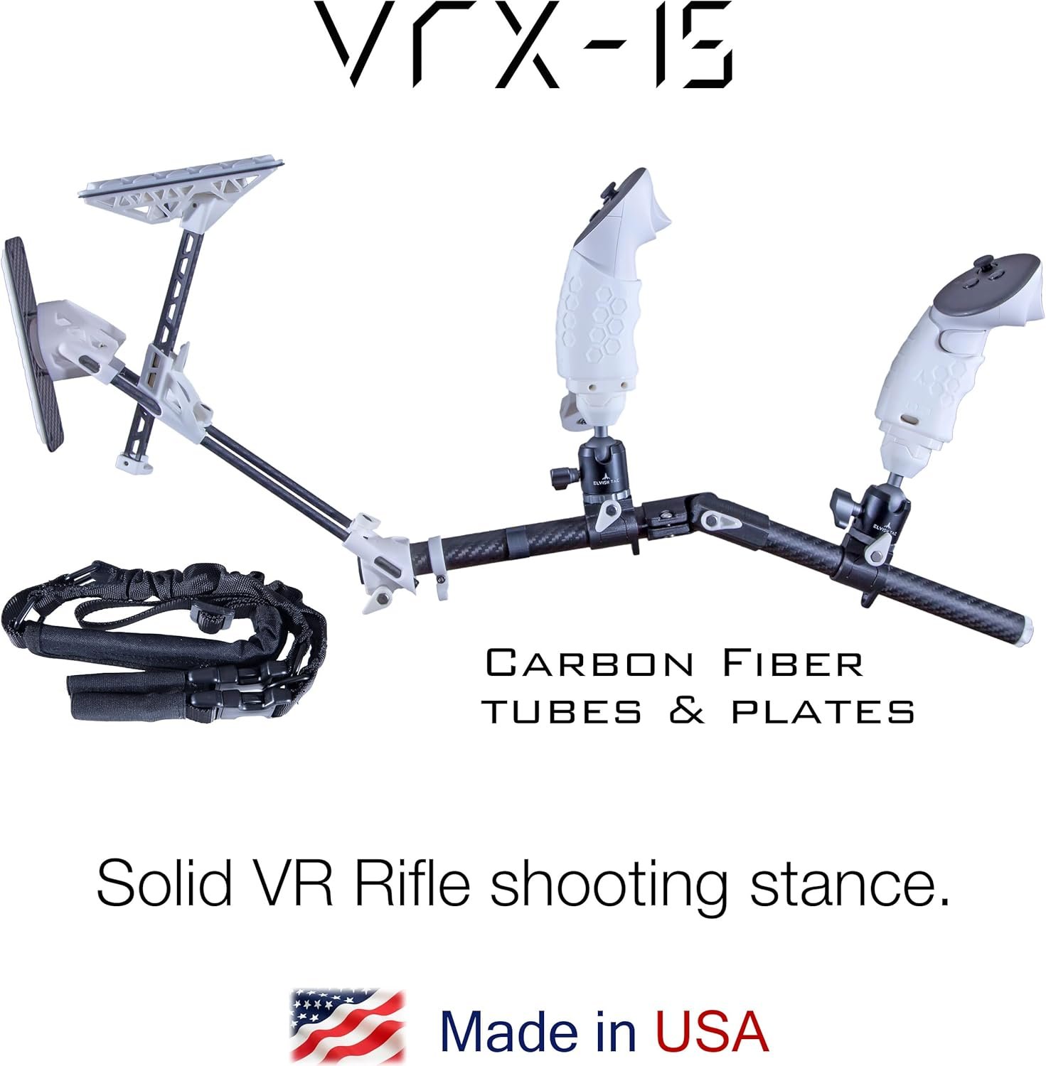 The VRX-15 Stock enhances VR rifle shooting stance by ensuring a rigid connection between the hands, shoulder, and cheek, eliminating floating hands for a more immersive experience. Compatible with Quest 3 and 3S, it significantly improves K/D and accuracy in games like Pavlov and HL Alyx. The stock is customizable with CNC aluminum ball joints, offering 17 degrees of freedom and tool-less adjustments. Made in the USA, it features strong Neodymium magnets for quick mag changes, is lightweight (1.2 lbs), and includes a high-quality rifle sling with four mounting points for versatility. Controllers not included.
