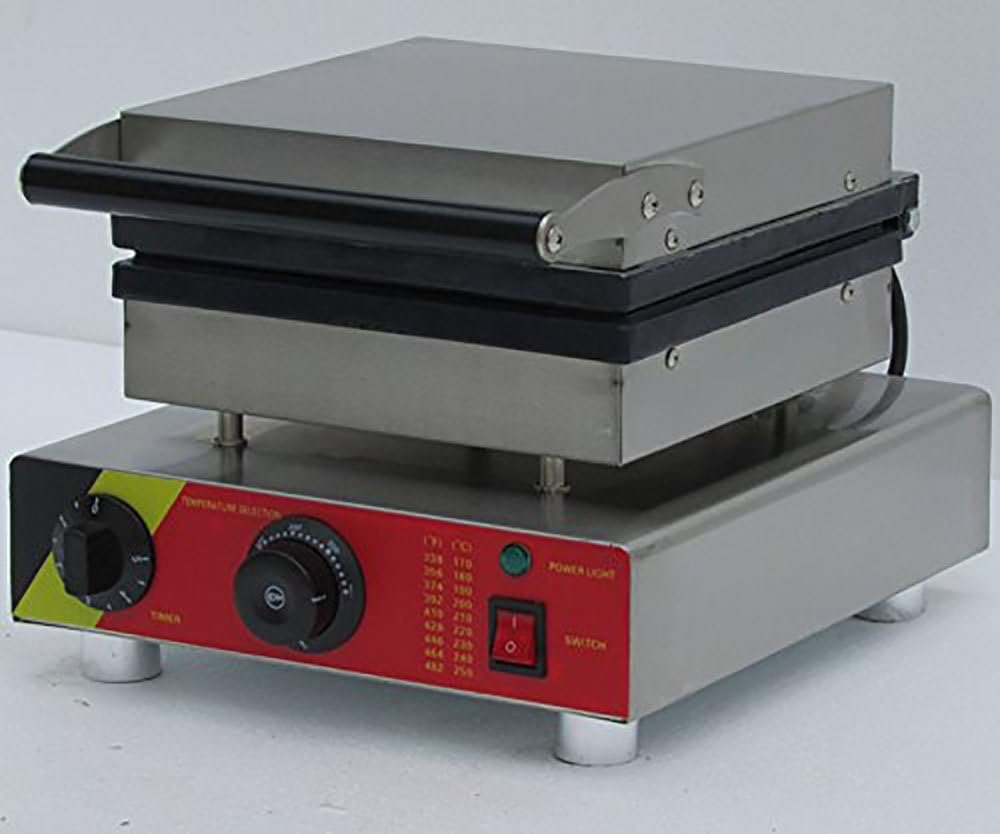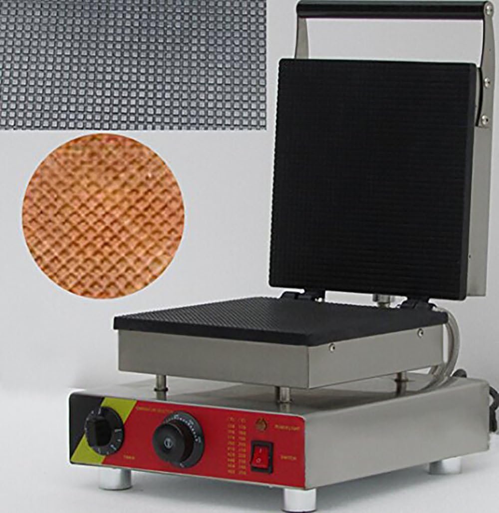 The ice-cream waffle cone maker produces one square waffle quickly, featuring a temperature control knob and timer for precise baking. Its nonstick plates minimize burning, ensuring a clean finish. Designed for efficiency, it eliminates the need for utensils, reducing waste and promoting easy takeaway. Constructed from rust-resistant stainless steel, maintenance is minimal. The machine includes a plastic handle, wooden roller, and stable legs for secure tabletop use. Simple operations require no training, and customer support offers a satisfaction guarantee. Ideal for both home and commercial use, it combines quality and durability for perfect waffle cones.