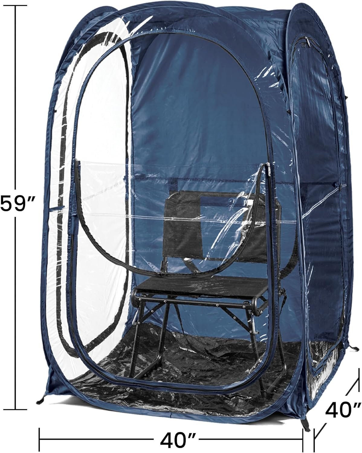Under The Weather offers a range of innovative Weather Pods, including large one-person, multi-person, and wearable versions. The Large 1-Person Pod is designed to fit an adult in a folding chair comfortably, featuring a lightweight, quick pop-up design with memory wire for easy setup. It provides a 270-degree view and is highly resistant to water, wind, and weather, with UPF 50 sun protection. Founded in 2010 and showcased on Shark Tank, Under The Weather focuses on creating high-quality, user-friendly products to shield users from the elements.