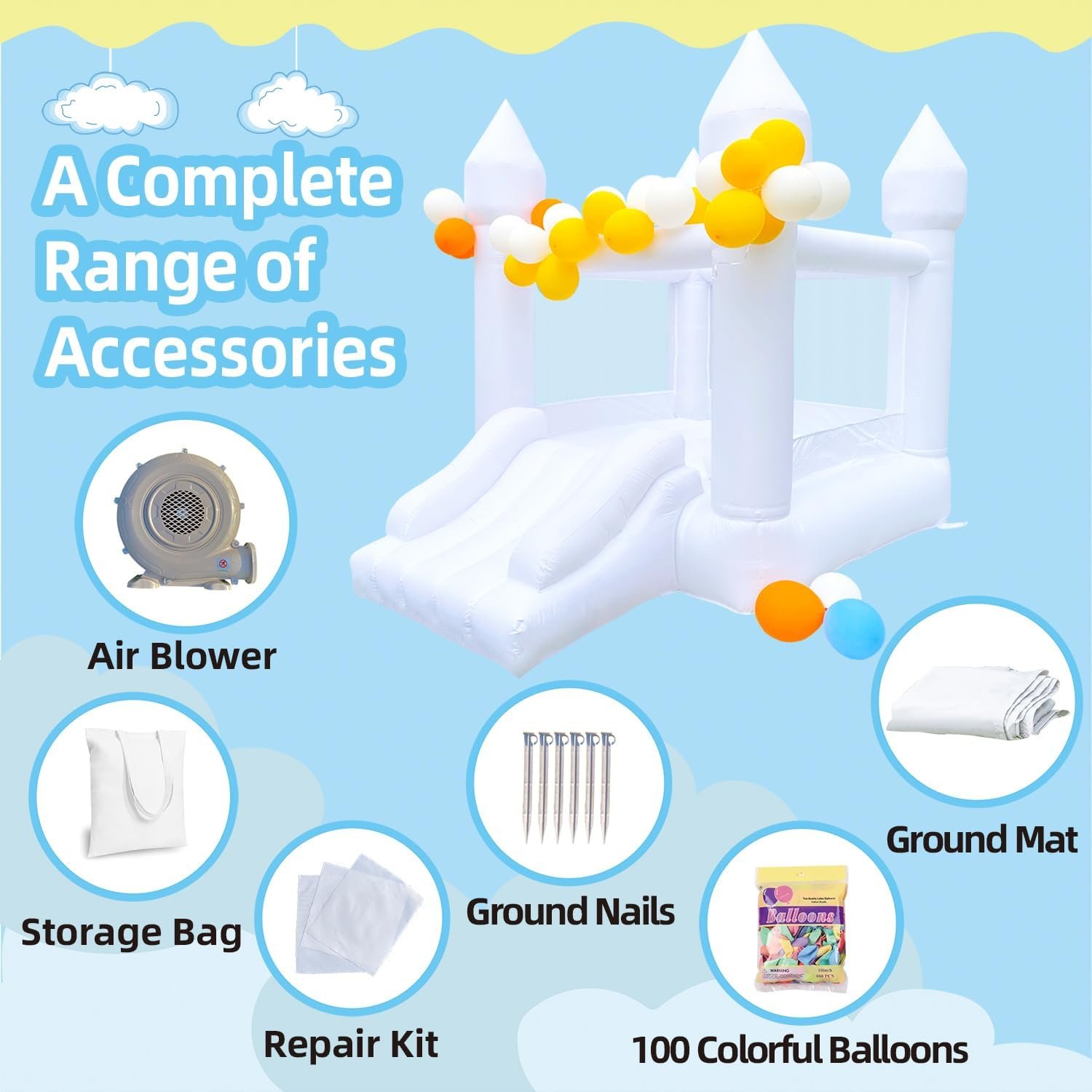Customers find the bounce house easy to set up and appreciate its white castle design that looks great in backyards. The product is durable, with one customer noting it held up well to multiple children’s weight, and customers find it worth the price. They like its functionality, noise level, and size, with one mentioning it can fit indoors.