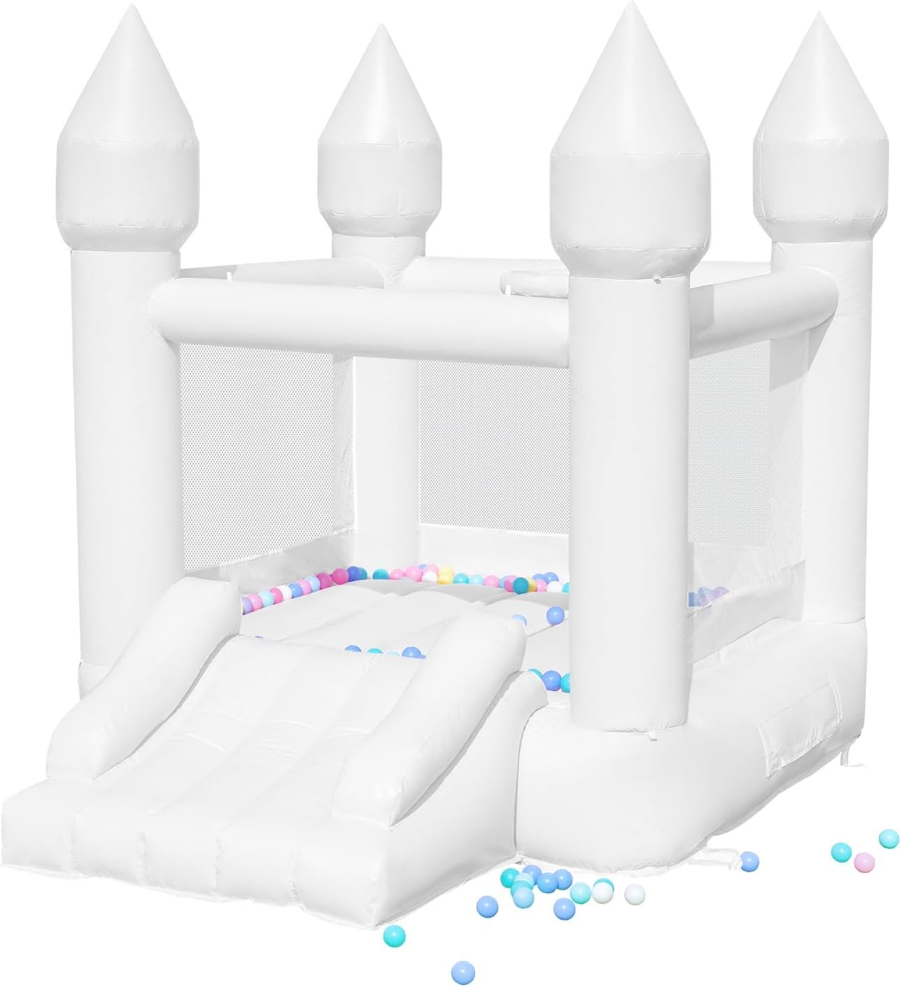 White Bounce House, PVC Material, Bounce House for Kids 3-6 with Blower, Bouncy House for Toddlers 1-3 with Slide Indoor Outdoor, 8.9ft L x 6ft W x 7.1ft H, Nice Bouncy Castle for Parties