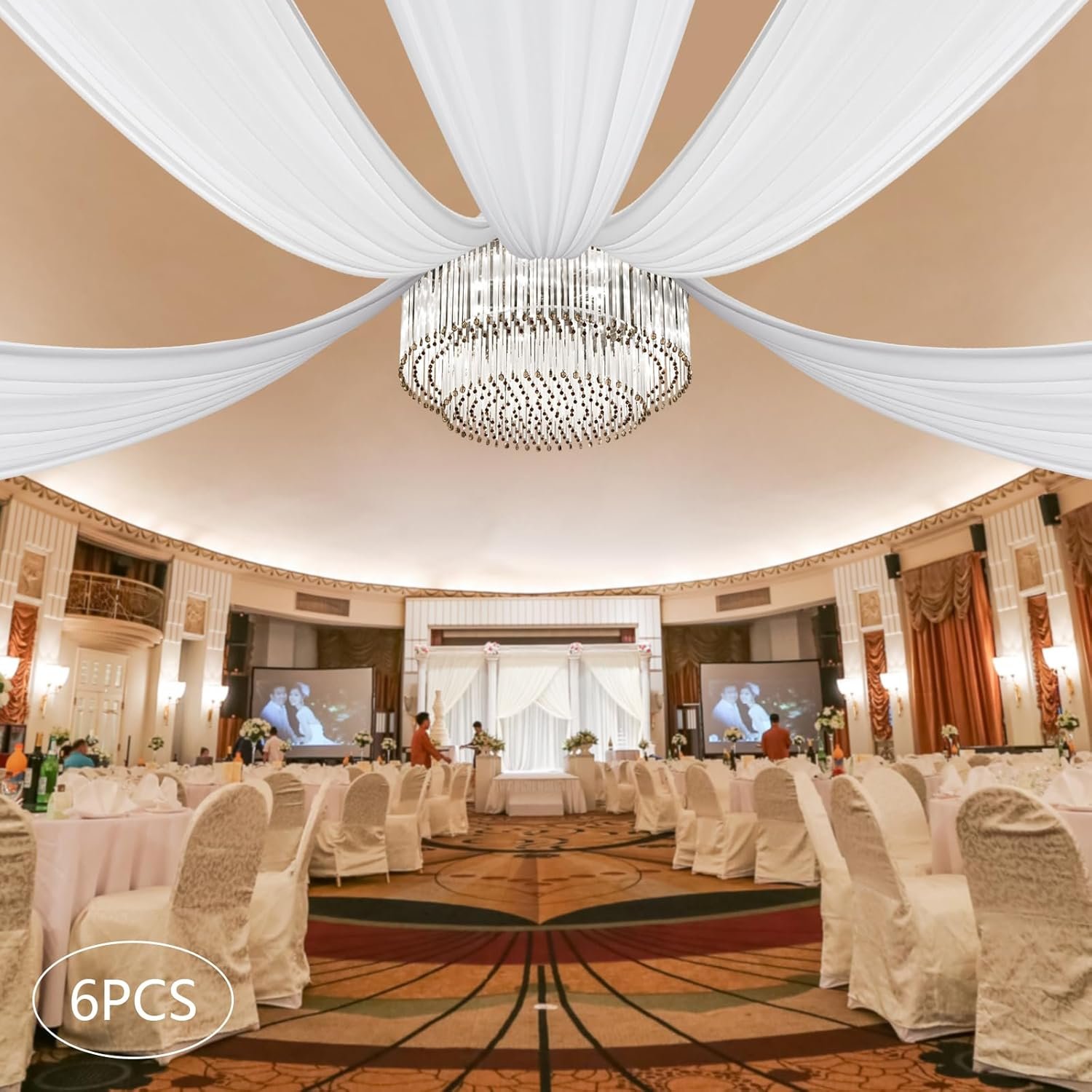 The product features exquisite sewing with neatly stitched edges and 100D thickness for enhanced wear resistance, making it ideal for various occasions like weddings, parties, and ceremonies. It includes six white chiffon drapes, each measuring 5×30 feet, designed with a rod pocket for easy hanging. The lightweight, breathable material adds elegance to any setting. Although it’s flammable, it creates a romantic atmosphere and can be easily cleaned by hand or machine. Note: rods and stands are not included, and caution is advised regarding color variations and minor measurement discrepancies.