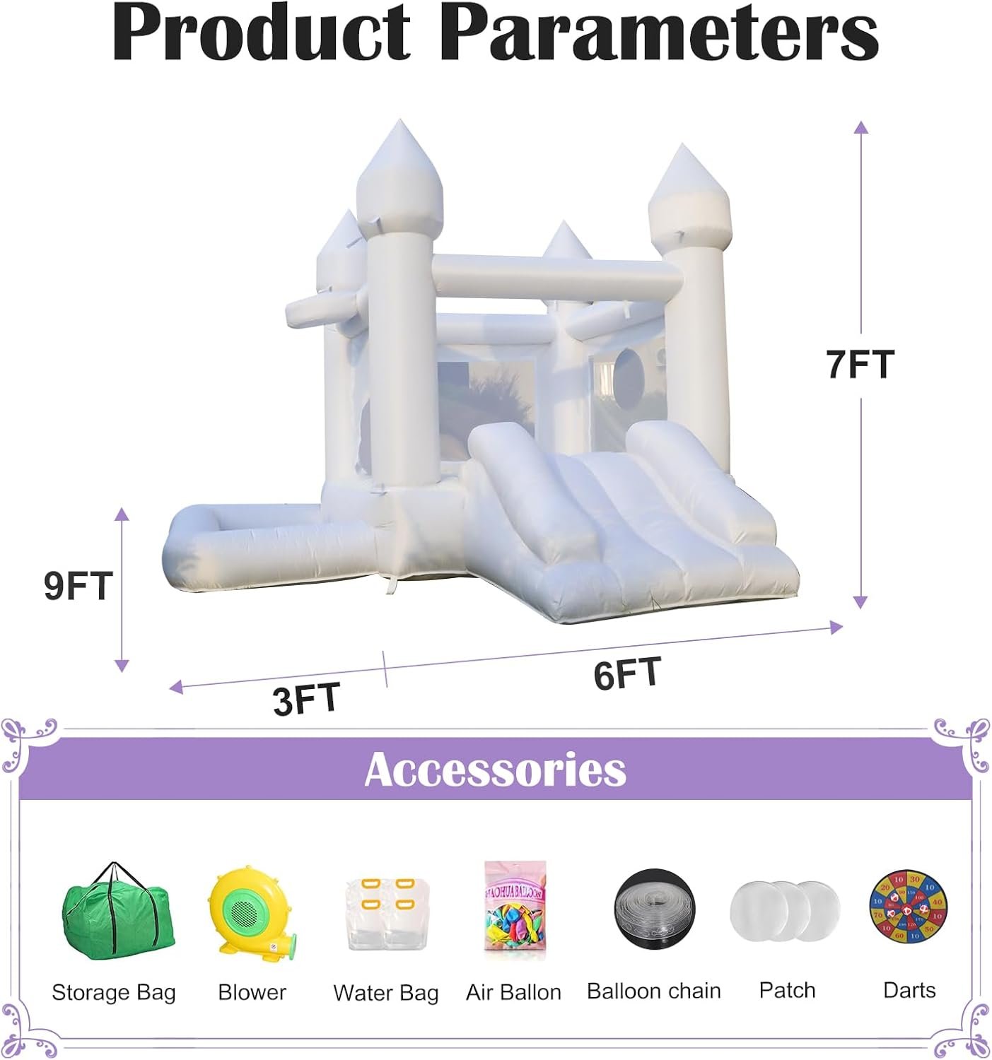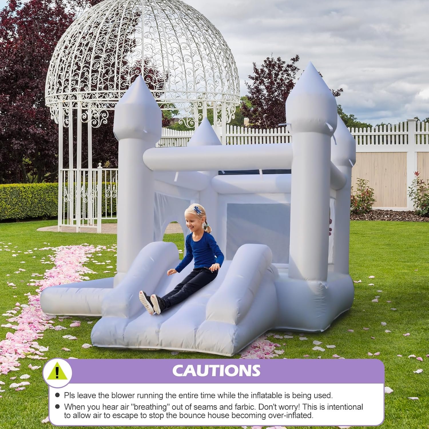 White Wedding Inflatable Bounce House with Blower Jump House with Slide for Kids Party Wedding Family Castle 9ftL×9ftW×7ftH