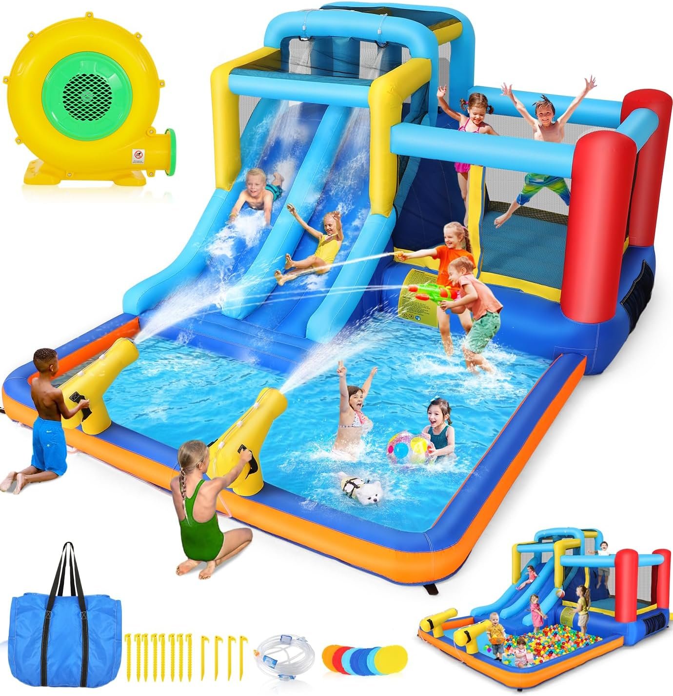 Whubefy 15×9.95Ft Bounce House Waterslide for Kids, 9 in 1 Inflatable Water Slide Bouncy House Jump Castle with dual Slide, Jump Area, Pool, Blow Up Water Slides Inflatables Park for Kids Backyard Fun