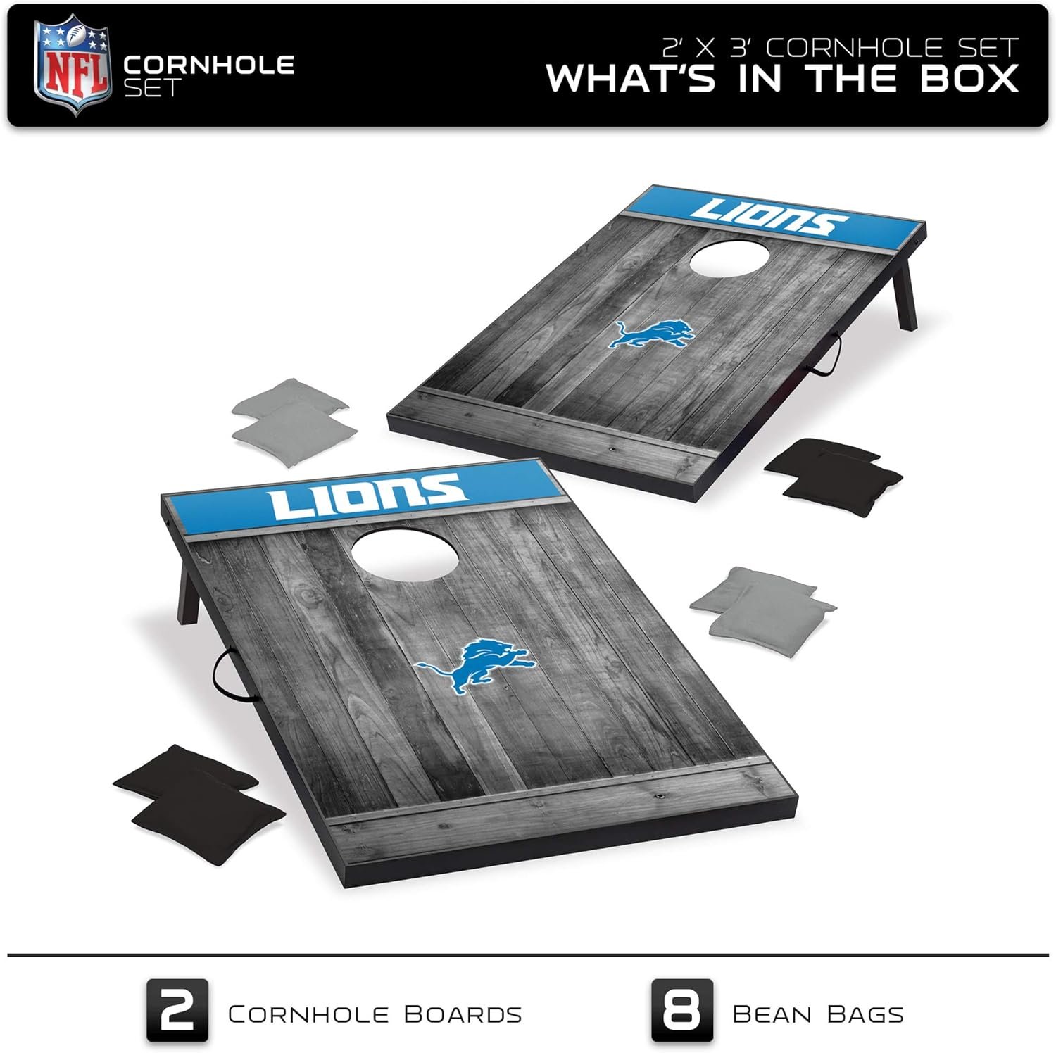 The Wild Sports NFL Licensed Cornhole Set features two 2′ x 3′ MDF wood boards and eight 6″ bean bags, perfect for outdoor fun at tailgates, backyards, or beaches. This easy-to-learn game, also known as bean bag toss, promotes friendly competition, with players aiming to score 21 points by tossing bags onto the boards or into their slots. Ready to play with no assembly required, this set showcases officially licensed NFL teams, making it a great gift for sports enthusiasts and a fun addition to any gathering. Wild Sports also offers various yard games for all ages.