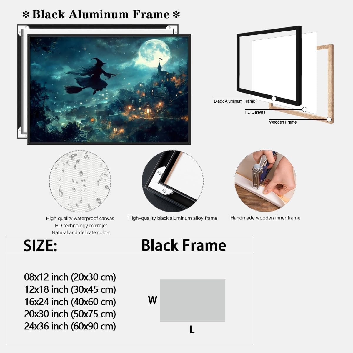 Enhance your space with this charming Halloween wall art poster featuring a whimsical witch theme. Designed for easy decor, it adds a playful touch to any room, suitable for both autumn and year-round use. Available in multiple sizes (12×18 to 24×36 inches) and styles (unframed, wood frame, or black frame), it fits various home aesthetics. Crafted from durable, eco-friendly materials with vivid, fade-resistant prints, it makes a great gift for teens or anyone who loves festive decor. Enjoy reliable customer service with support for any issues. Transform your home or office with this enchanting poster today!
