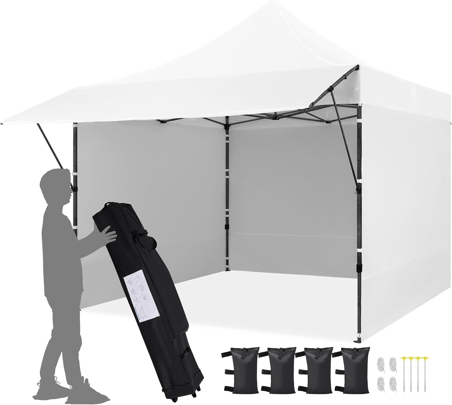 Yaheetech 10×10 Pop up Commercial Canopy Tent with 3 Removable Sidewalls & Awning, Portable Freestanding Shelter, Outdoor Heavy Duty Party Canopies W/Roller Bag, 4 Sandbags, Stakes & Ropes, White