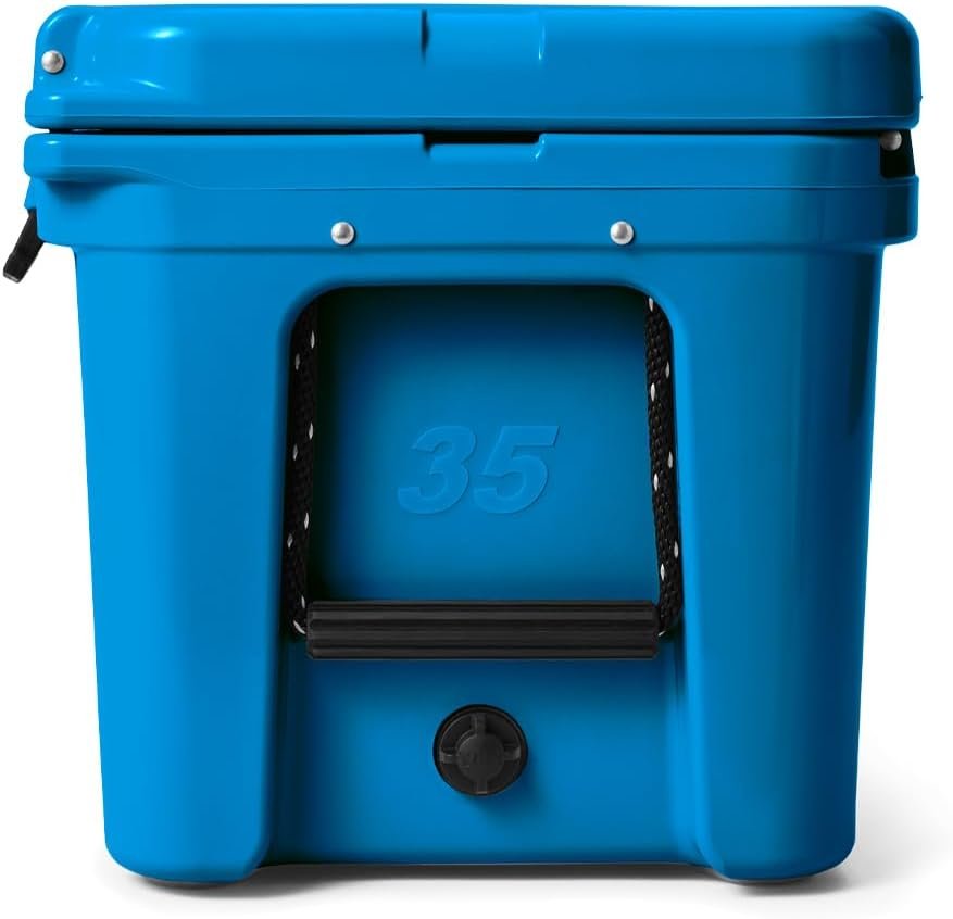 The YETI Tundra 35 cooler is a portable and durable option, capable of holding up to 20 cans with an optimal 2:1 ice-to-contents ratio. It features 3 inches of PermaFrost Insulation and a heavy-duty FatWall design, making it bear-resistant and virtually indestructible. The rotomolded construction ensures longevity, while T-Rex Lid Latches prevent breakage. The cooler measures 20 x 16 1/8 x 15 1/4 inches and weighs 20 lbs. Each unit includes a dry goods basket, ideal for outdoor adventures.