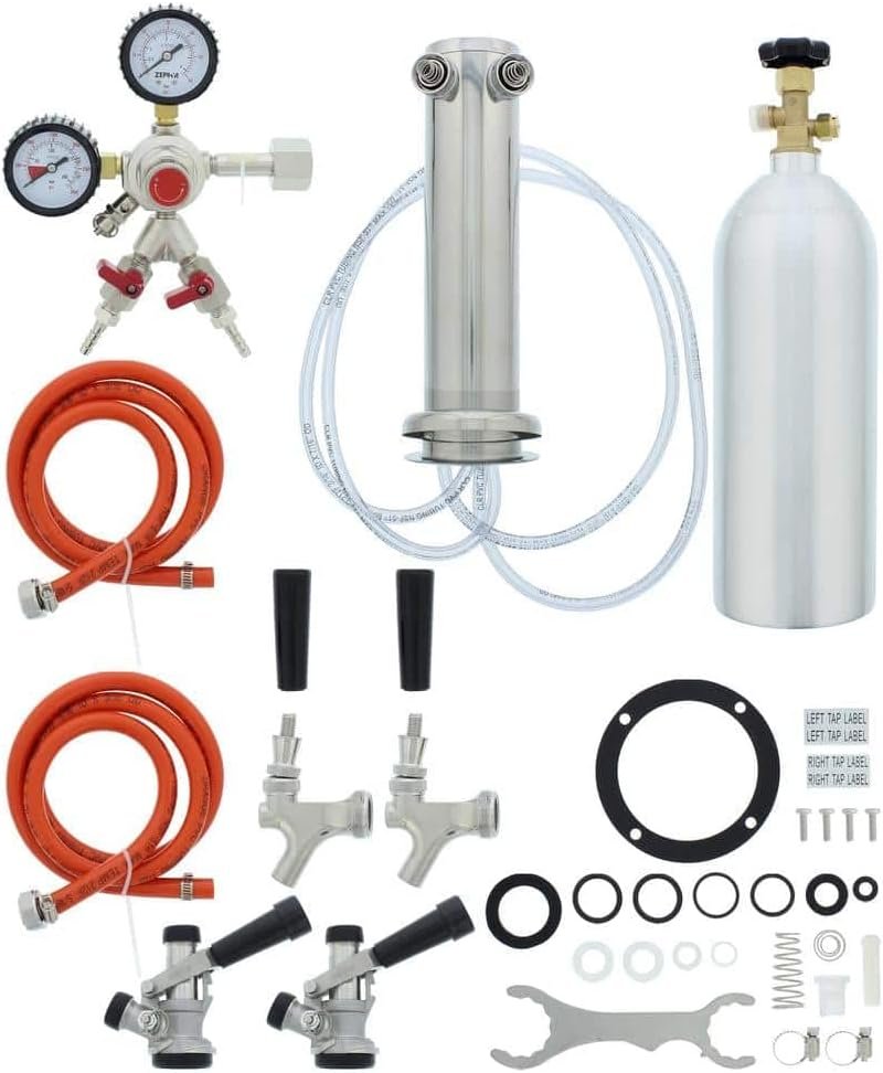 Zephyr Presrv™ Double Tap Kit – Includes Two Taps, Stainless Steel Tower, 2 Beer Lines, Gas Line, Regulator, CO2 Tank and 2 D-style Keg Couplers – Designed to use with a Presrv™ kegerator
