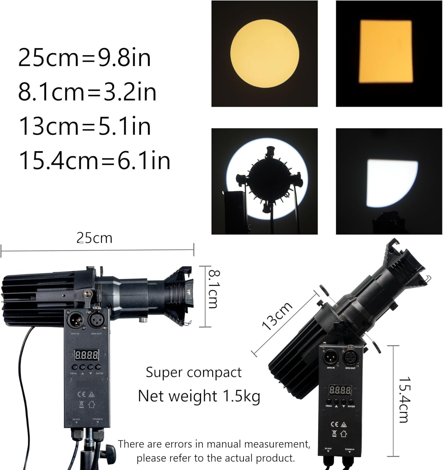 The EXPO 40 XProfile Spot Light features a fanless, silent design, weighing just 3.3 lbs. It boasts high brightness and a colour rendering index (CRI) of 92, making it ideal for various settings like museums, theaters, and malls. The product includes a power cord, color-changing accessories, and safety features. With a 50% increase in brightness, the 40W COB LED ensures long life and low power consumption. It offers smooth dimming, DMX control, and adjustable color temperatures. Backed by a 360-day service guarantee, it promises satisfaction with a 30-day return policy.
